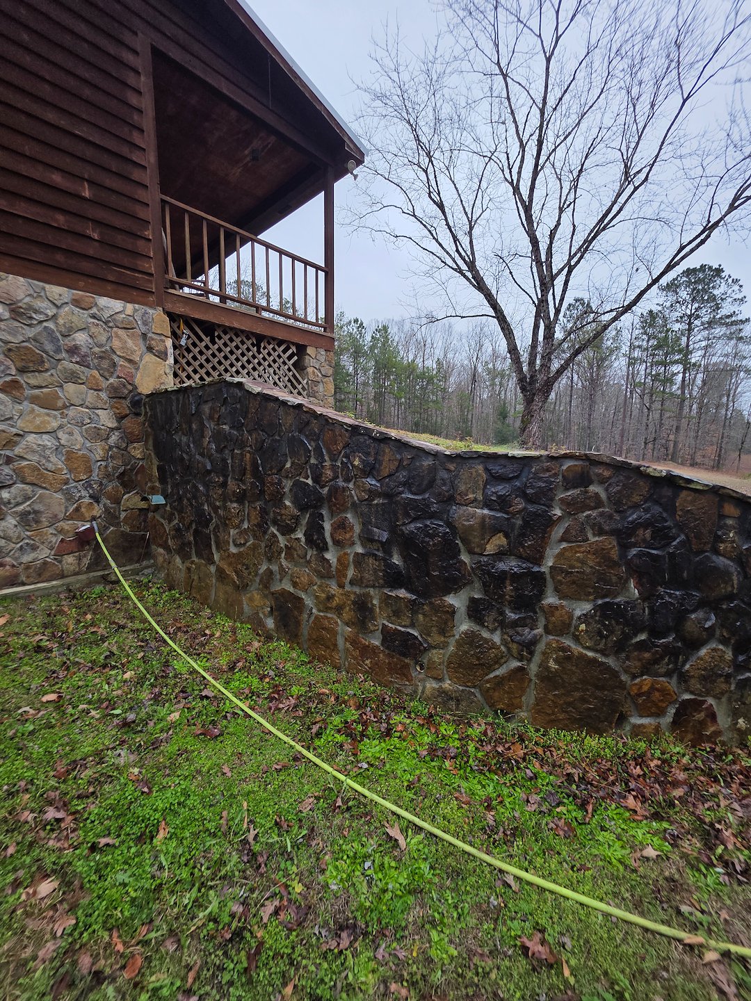 Rock wall softwashing in Opelika Al.